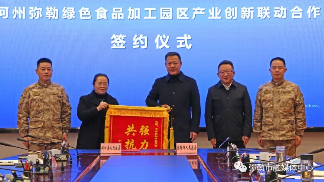弥勒市领导李云,河口县领导李季、郭连顺、卢光荣及两县市相关部门负责人参加签约仪式。