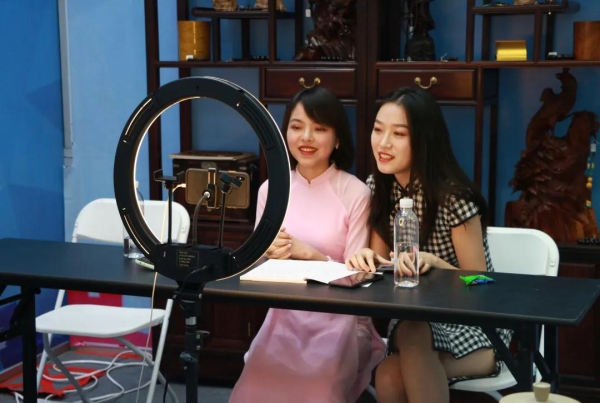 3号直播间身穿旗袍和奥黛的美丽女孩是河口脑洞传媒有限公司的两位网红。脑洞传媒借助抖音和Tik Tok平台等,与众多国内商家合作,进行品牌宣传和跨境电商直播带货。目前在越南有超过3000万粉丝。