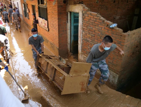 驻河口解放军某部队参加抢险救援同群众并肩“作战”