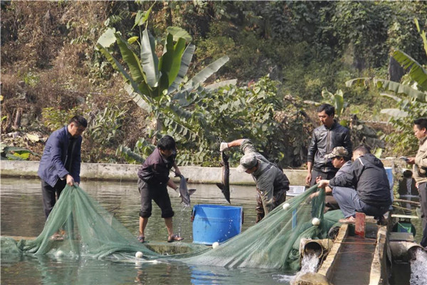 自脱贫攻坚战打响以来,李兵妹经常在想,如何才能让民族众多、地处边境乡镇的安家河村脱贫致富?作为村党总支书记,李兵妹充分发挥“党建+扶贫”双推进引领作用,成立南溪山谷水产养殖农民专业合作社,以“公司+村集体+村民小组+农户”的方式,引进龙头企业、吸收贫困户入股、带动贫困户养殖、吸纳贫困户就业。按照每批鱼苗出售70%、自留30%的计划,每年产值可达20万元以上。此项目实施后,带动了80户家庭参与养殖,扩大养殖规模,每年养殖出售成品鱼10000多条,产值约42万元,极大地带动了当地农牧渔业发展,解决了安家河村无特色经济、无村集体经济、无龙头企业带动致富的难题,加快了脱贫攻坚进程。