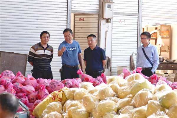 杨光云一行先后实地调研了下湾子红心柚基地产业发展情况、纸厂脱贫攻坚分拣加工厂分拣设备运行情况,并与下湾子村驻村工作队、村干部进行座谈。