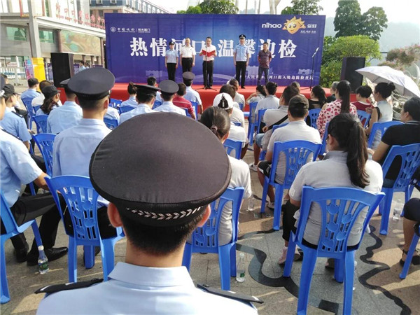 8月18日,河口出入境边防检查站在南溪河口岸花园举行中国边检服务品牌集中推介活动,县人民政府副县长刘文杰参加活动并讲话。