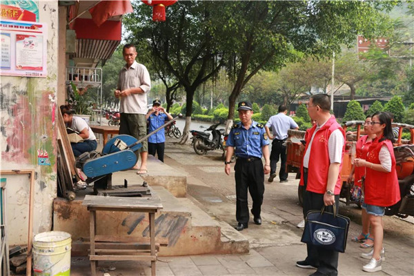 针对存在问题,督察组当场商家进行协商,要求立即整改;对于多次警告仍占道的广告牌、陈年废弃的垃圾进行处理;对违法停车的车辆给予处罚。