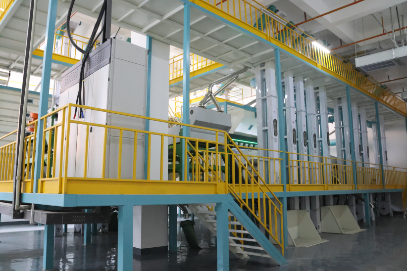 加工厂区内一片繁忙景象,工人们井然有序地搬运着当天进口的越南罗布斯塔咖啡豆。伴随着机器的运转声,一粒粒饱满的生咖啡豆在自动化生产线上依次完成入库、分筛等工序。在全套精密加工设备的精准作业下,每小时可加工6到7吨生豆。