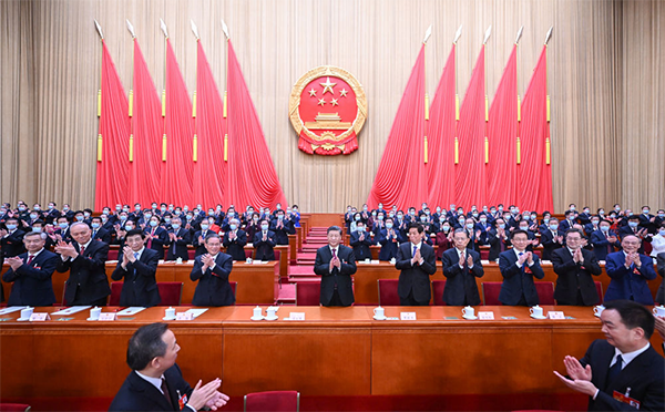 上午9时,十四届全国人大一次会议第三次全体会议在人民大会堂举行。