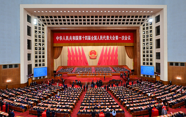 3月11日,十四届全国人大一次会议在北京人民大会堂举行第四次全体会议。新华社记者 李鑫 摄