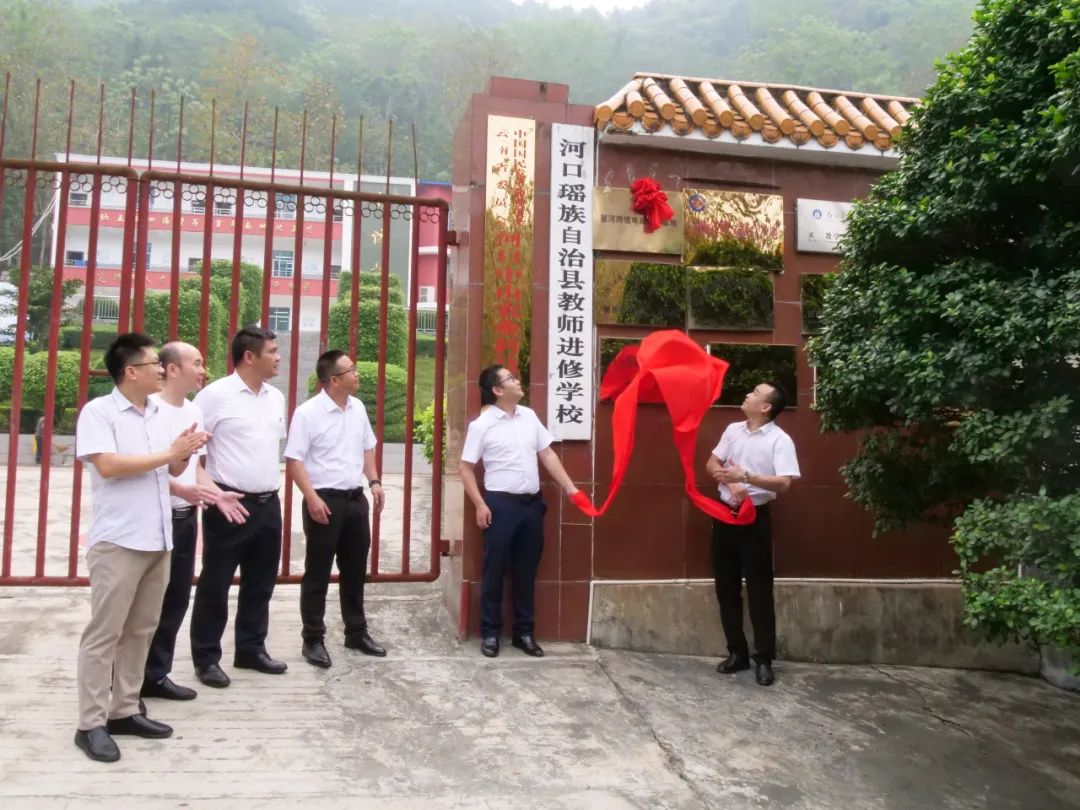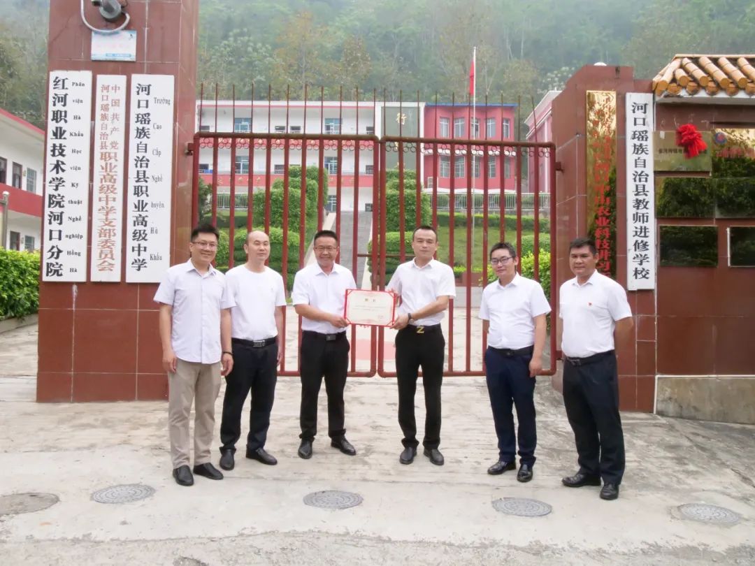 揭牌仪式上,河口县职业高级中学主要负责人为云南自由贸易试验区星河跨境电商有限公司总经理斯晓志颁发聘书,聘其为河口县职业高级中学“校企合作”实训外聘教师。