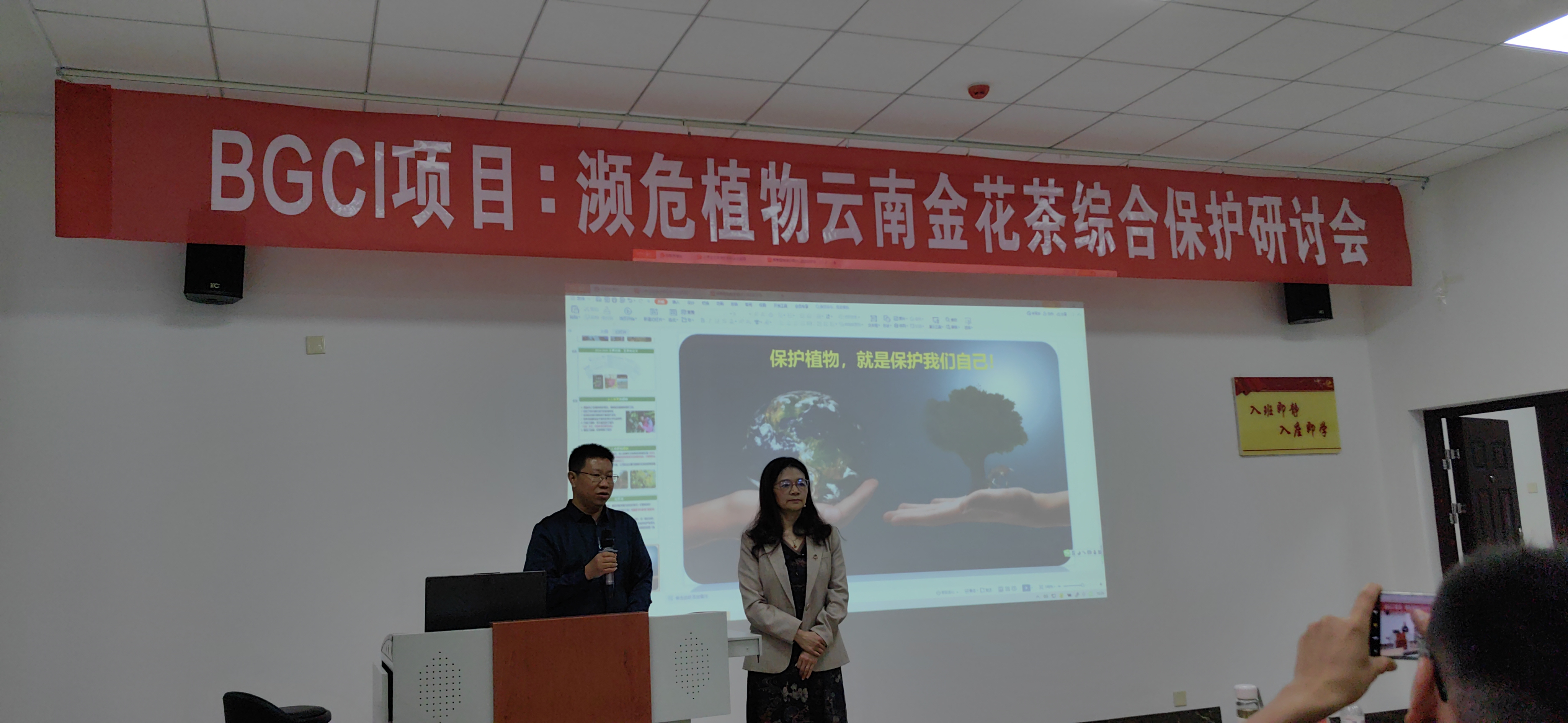 会上,BGCI中国办公室负责人文香英正高级工程师对濒危植物综合保护技术进行了培训与案例分析;中国科学院昆明植物研究所王仲朗正高级工程师讲解了金花茶的分类与应用;西南林业大学向建英副研究员汇报了云南金花茶的综合保护及可持续性利用项目进展;中国科学院昆明植物研究所沈云光高级工程师介绍了山茶属植物的常用繁殖技术;中国科学院昆明植物研究所蔡磊博士阐述了云南大围山苦苣苔科的植物多样性。