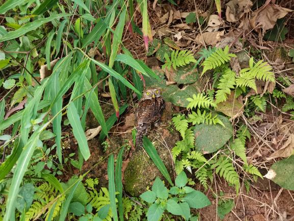 工作人员将斑头鸺鹠带至槟榔路旁的林木中,在确认其健康且具备野外生存能力后将其放飞,放飞后,工作人员在现场观察了一段时间,确定没有问题后离开。