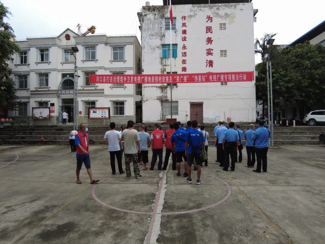 8月10日,河口县委宣传部联合县公安局、县文旅局等部门共同开展联合执法行动,对南溪镇和南溪农场辖区内的境外卫星电视广播地面接收设施及“黑广播”“伪基站”进行清理整治。