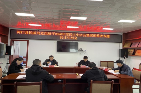 2021年2月7日,河口县民政局党组召开2020年度民主生活会暨巡视整改专题民主生活会。会议由民政局党组书记,局长许锋同志主持,河口县委组织部、县委第一督导组有关同志到会指导。