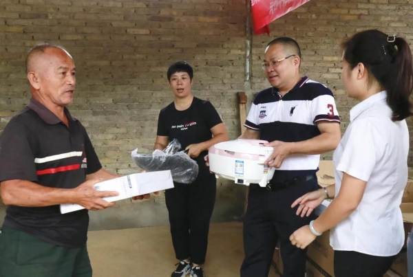 云南惠红科技、云南润盛科技、红河雅顺科技、河口边合税务有限公司和河口个体私营经济协会共捐赠了80套价值2.8万元的电饭煲、电饭锅、电炒锅,分发给坝洒农场80户受灾群众,帮助他们解决眼前的困难。