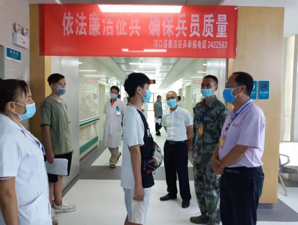 近年来,河口县充分调动广大青年报名应征的积极性,严把征兵体检关,坚持“廉洁征兵”,确保把政治素质过硬、身体素质强、文化水平高的优秀青年输送到部队。