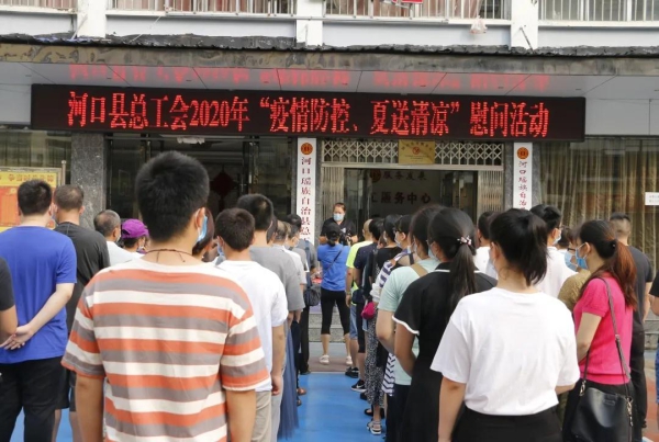 在活动仪式上,邓东艳介绍了我县疫情防控工作情况以及县总工会对疫情防控一线工作人员和困难职工开展慰问的情况。随后还实地走访了河口口岸、红河沿线疫情防控执勤点、北山社区疫情防控执勤点的工作人员,详细了解了他们的工作和生活情况,并为他们送上慰问品和慰问信,叮嘱他们在做好疫情防控工作的同时也要做好自身防护,坚决打赢疫情防控阻击战。