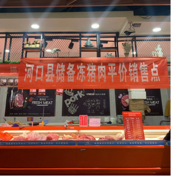 为满足群众节日消费需求,保障市场供应,稳定猪肉价格,自2020年1月20日起,我县已经启动春节前的政府储备肉投放工作。投放品种有精腿肉、精瘦肉、五花肉、精排骨、前腿、后腿等。此轮储备冻猪肉投放按照保障民生和就近购买的原则,选取了河口县5个中大型超市为投放网点。各投放网点统一设置储备冻猪肉销售专柜,统一悬挂“河口县储备冻猪肉平价销售点”和“河口县人民政府冻猪肉投放市场最高限价标准”标识牌,销售价格低于鲜猪肉同类市场批发价15%。本次投放冻猪肉从收储到上市投放,质量层层把关,市民可以放心购买。