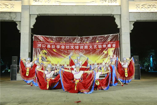 为了调动大家的积极性,让更多的人了解壮族民间优秀的传统文化,此次培训中还穿插了文艺表演。12月1日晚,演员们穿着艳丽的民族服装,在北山广场展演壮族及其它少数民族的优秀的舞蹈和歌曲民歌,将此次培训气氛推向了高潮,赢得了现场观众热烈的掌声。