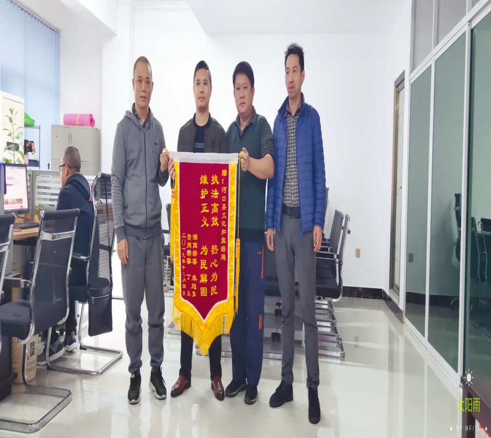 12月3日下午3时许,河口县旅游购物退货受理中心接到贵州和湖南游客朱先生、丁先生在“一部手机游云南”投诉平台上投诉,12月2日,朱先生、丁先生在前往越南老街、沙巴一日游途中,在越南老街免税商城体验店购买商品,经鉴定,该商品为不合格产品,要求协调其全额退款。县旅游购物退货受理中心在接到投诉后第一时间积极和中方旅行社、越南旅游公司以及老街免税店协商退货事宜,经协商同意全额退款。受理中心在接到投诉后1个半小时内为游客快速处理退货事宜,得到两位游客一致好评,12月4日,朱先生、丁先生专程赶到河口,为河口县文化和旅游局送上了“执法高效、热心为民、维护正义、为民解困”的锦旗,以表达他们的真诚谢意。