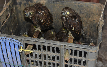 (图一:被解救的5只猫头鹰雏鸟)