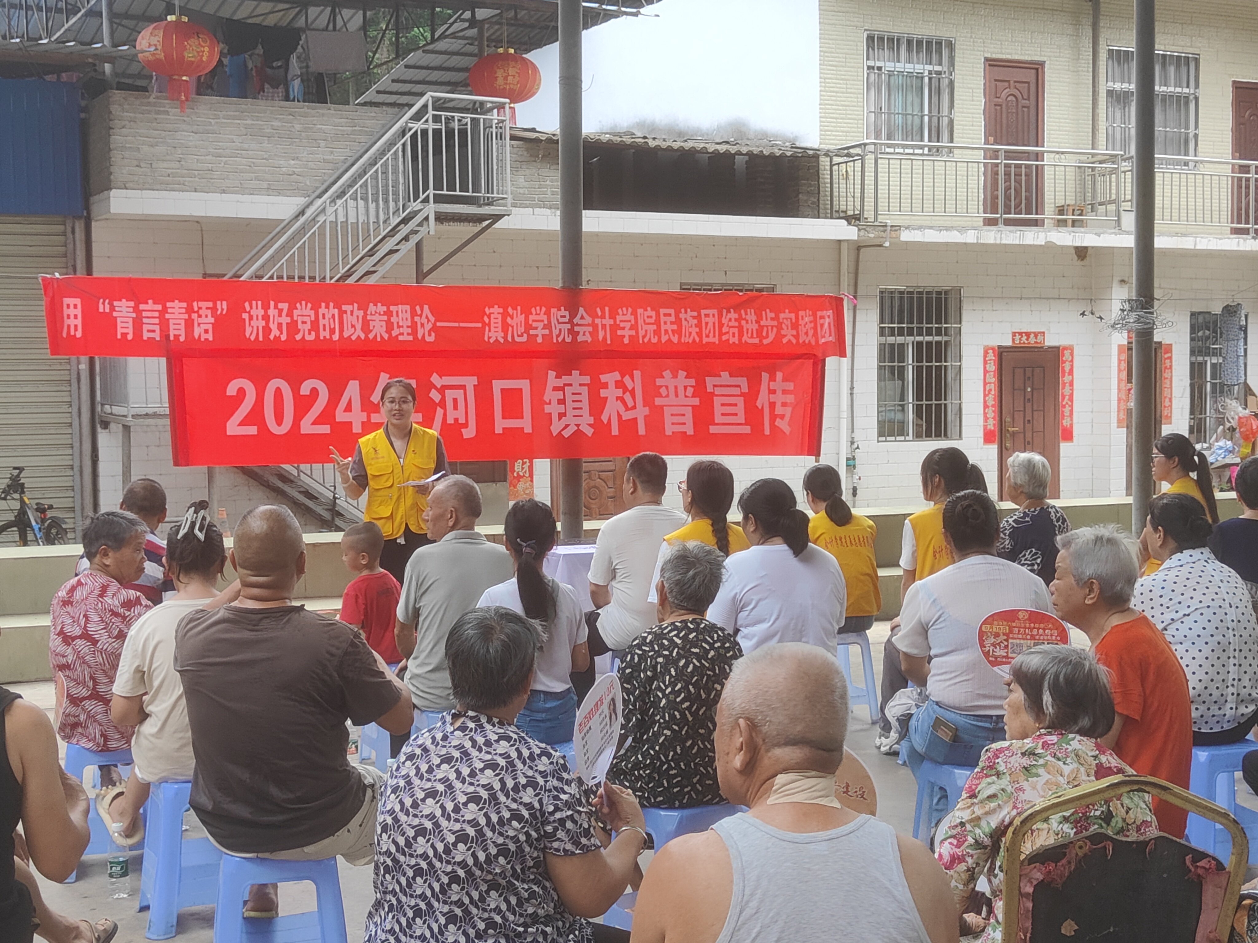 为开展好“边境民族幸福科普行动”进一步提升群众科普知识和科学素养,近日,河口镇、洞坪社区、滇池学院会计学院在洞坪社区冯家寨小组篮球场开展“理解科普、受惠科普、参与科普”主题宣传活动。