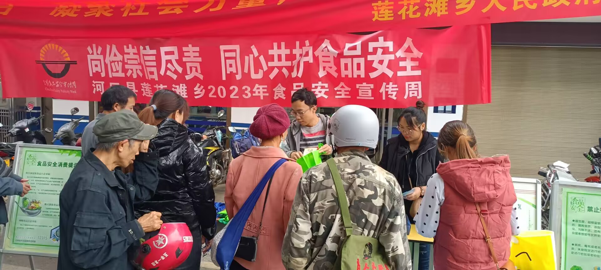 为进一步增强群众的食品安全意识,加强食品安全宣传教育工作,营造良好的食品安全环境。12月10日莲花滩乡开展主题为“尚俭崇信尽责 同心共护食品安全”的食品安全宣传周活动。