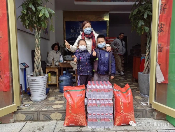 据悉,两个小同学共拿出26880元压岁钱购买了2吨大米和312件益吉泉瓶装水,为支持河口抗疫贡献自己暖暖的力量!