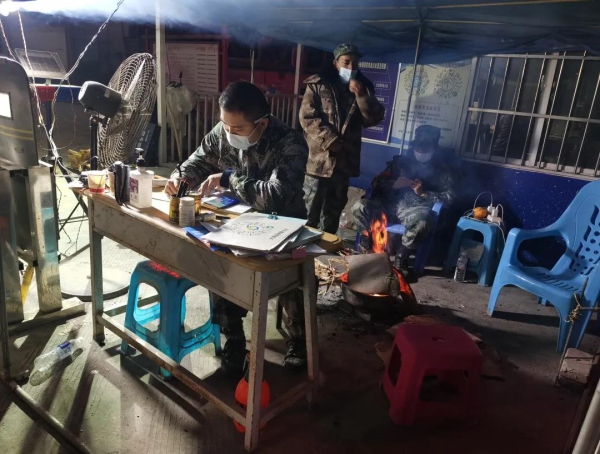 ● 南溪镇领导、村干部、强边固防突击队队员夜间巡逻值守