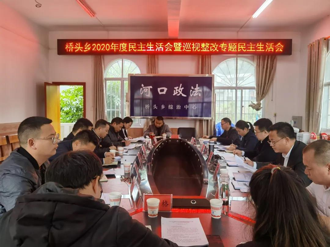 会上,桥头乡党委书记刘玉勇代表乡领导班子作对照检查,乡党委班子成员、驻村扶贫第一书记逐一进行个人对照检查发言,并认真开展批评和自我批评。