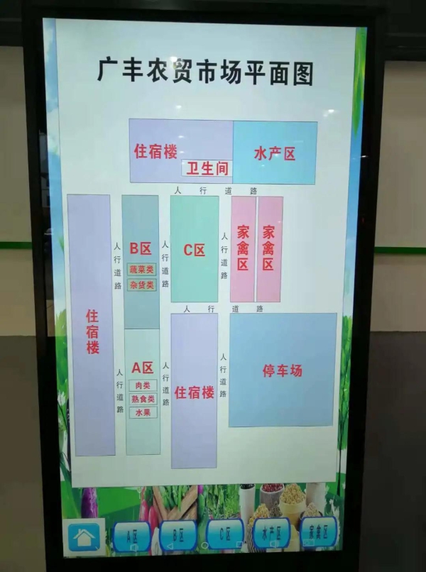 以贯穿全流程业务的大数据平台为核心,打造智慧监管、智慧公示、智慧商场、智慧采集、智慧管理、智慧分析的“六大智慧”农贸市场,切实解决传统农贸市场“市场管理机制粗放、政府食品安全监管滞后、商户运营低效落后、社会资源对接脱节、市民信息追踪不透明”等痛点。目前已完成第一阶段建设工作,通过多媒体设备将商户信息、菜价、农药残留检测等信息公示,通过移动O2O商城让消费者直接线上下单选购。预计全部完成投入使用后,将通过采集实时获得市场交易客流检测等精准数据,运用大数据智能化分析,掌握市场各项发展趋势,将市场的交易总量、交易笔数、交易金额、客流总量、商户数量、摊位总数等进行收集、统计和分析,形成图形化的智能展示界面,为市场管理方、市场来访者提供直观的市场运营全景展示。