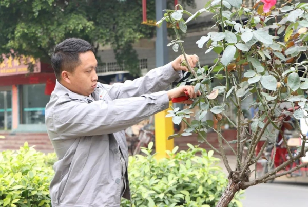 近日,记者走访城区的过程中看到,许多穿着“吉成园林”标志的绿化员工,正忙碌地修剪苗木,一排排修剪整齐、生长旺盛的绿化苗木扮靓了整个县城。