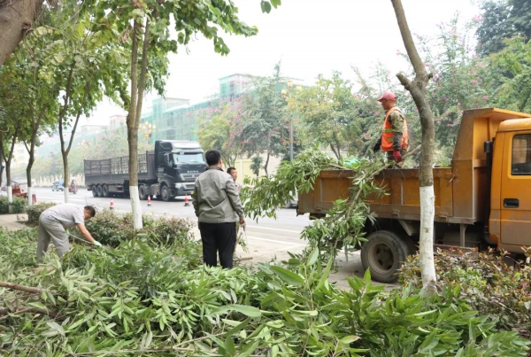 绿化队负责人张德明说:“河口正在创建美丽县城,我们加大了对行道树的管理,排除它的安全隐患,让它更加整齐美观,使它来年生长得更好。”