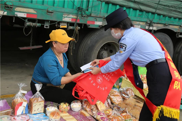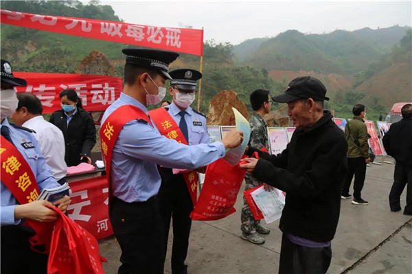 “您看一下,这个是扫黑除恶的举报方式。”在五道河赶集天,来自党政军警民“五位一体”联合党支部的边境普法服务队正在市场内开展法制宣传活动,活动现场通过设置咨询服务台,悬挂横幅、发放宣传资料等形式,向群众宣传扫黑除恶、禁毒防艾、法律援助等内容,同时,来自瑶山边境派出所的民警还结合工作职能,面对面倾听群众诉求,协调解决相关问题。