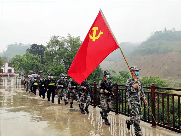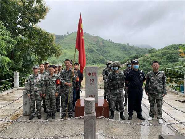 治安维护是加强法治教育先进性建设的外在保障。党政军警民“五位一体”联合党支部每月不定时组织驻军、驻警、民兵、边民在五道河边境一线开展边境联合巡逻,主要对中越红河中方一侧92号至93号界碑区域进行实地踏查。