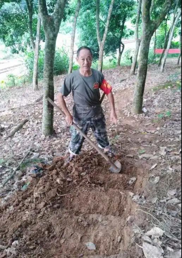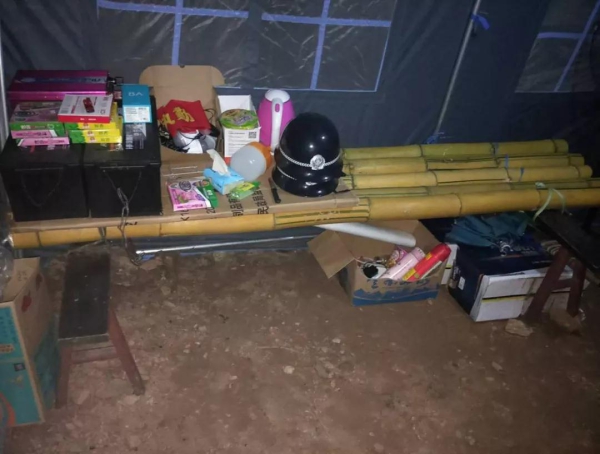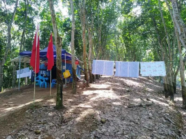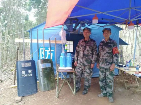 三条半卡点经常有三轮车通过,路面形成三股槽印。一遇大雨,雨水就顺着三股槽印流入疫情防控的帐篷内,导致地面泥泞,容易摔跤。侯建国想方设法,带上十字镐、锄头在帐篷周边清出一条排水沟,保持帐篷内干燥。侯建国把卡点当成自己的家,看着帐篷内的防疫物资警棍、盾牌无处安放,他到河边砍上竹子,模仿制作像部队放置枪一样的枪架,将竹子做成一条一条的槽来放置警棍,用几根竹子搭成像床板一样的平台放置桶装水、液化气灶等值班必需的杂物。因河口气候潮湿,帐篷里床单被罩使用一段时间会发霉,影响值班人员健康,侯建国多次自己带着洗衣液和水桶清洗卡点上的床单被套,洗好后拿到帐篷外橡胶树的铁线上晾晒,三条半卡点在侯建国的精心“呵护”“照料”下,变得温馨、温暖。