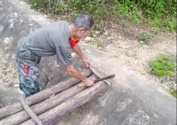 从四条半卡点步行到三条半卡点,要跨过铁轨排水沟,排水沟宽度1.5米,大步跨过存在安全隐患。侯建国带上砍刀、铁锤、自己购买铁钉、铁丝架设了2个跨沟的木桥,方便值班人员行走。