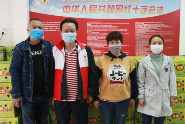 红十字会工作人员代收火龙果后按照捐赠人的意愿,随即将这批爱心火龙果分发到一线防控工作人员的手中。