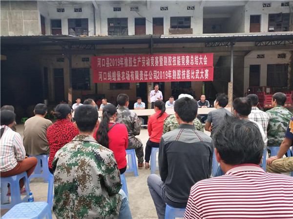11月15日下午,由河口县总工会、蚂蝗堡农场举办的河口县2019年橡胶生产劳动竞赛暨割胶技能竞赛总结大会在蚂蝗堡农场有限责任公司召开。