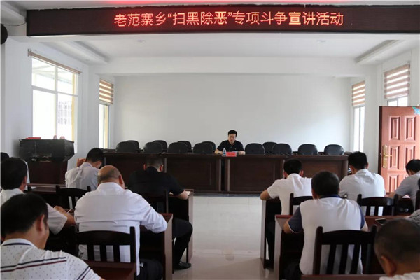 4月23日,县人民检察院检察长周茂华到老范寨乡开展扫黑除恶专项斗争宣传活动。老范寨乡党政班子成员、乡机关全体职工及两村干部共计70余人参加了宣讲活动。