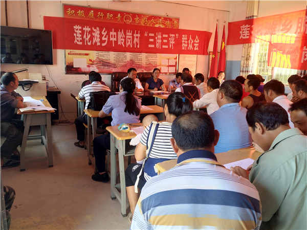 莲花滩乡中岭岗村长虫坡小组“三讲三评”群众会于8月10号正式开讲,驻村工作队、村干部、建档立卡户共计30人参加讲评,同时参会的还有挂联单位县森林公安局局长李成云等5人,各小组组长到会学习。