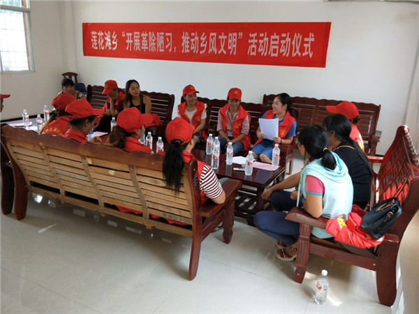 为弘扬中华美德,塑造文明形象,进一步崇善科学,破除陈规陋习,充分发挥妇联组织优势打赢脱贫攻坚战。8月15日,莲花滩乡妇联在莲花滩村莲花滩小组“开展革除陋习、推动乡风文明”活动启动仪式,莲花滩乡各村委会妇女干部及志愿者积极配合参与了本次活动。