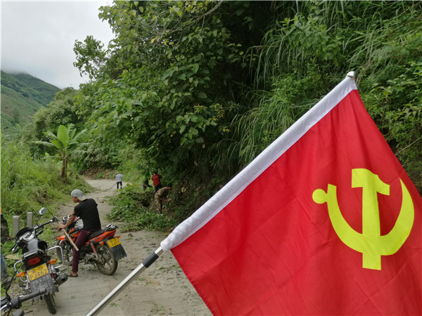 党旗所指,民心所向。在河口县莲花滩乡石板寨村,近10公里通村公路上,沿线4个村民小组的三个党支部三面党旗在路上迎风飘扬,引领着上百名党员群众,凝心聚力开展集体公益劳动,提升人居环境,对辖区内通村公路进行管理养护和沿线垃圾清理。