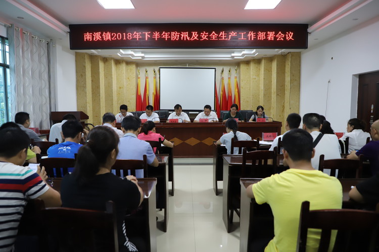 8月8日,南溪镇召开2018年下半年防汛及安全生产工作部署会,南溪镇干部职工,中小学、卫生院主要领导,四个村委会总支书记、主任,各隐患点监测员,各企业负责人70余人参加会议。