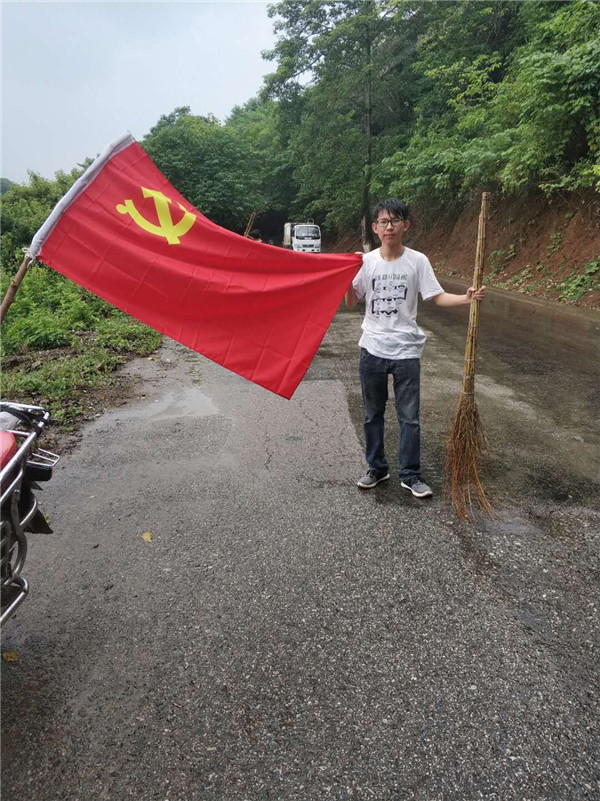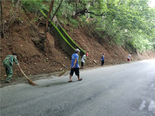 当天早上6:30,在干龙井第一书记杨金玉的带领下,党员们手拿着扫帚、钳子及垃圾袋,开始清扫道路。虽然下着小雨,但是他们三五成群,分工合作,用各自的实际行动带头参与到环境整治行动中。