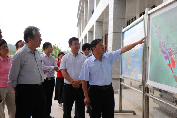 河口跨合区管委会副主任李兴锟(右一)向考察组介绍跨合区推进情况