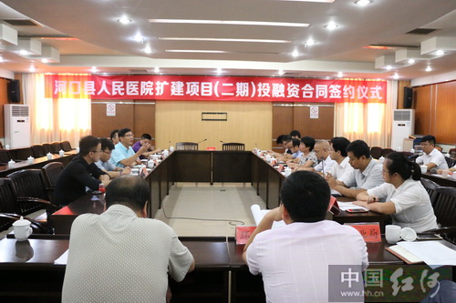 河口县人民医院扩建项目于2014年12月正式立项启动,2016年12月31日,河口县人民政府与珠海和佳医疗设备股份有限公司正式签订《河口瑶族自治县人民医院扩建工程项目投融资合同》,并完成投融资合同签订一期项目总投资1.8亿。项目于2016年9月9日正式开工建设,目前已完成场地平整、抗滑桩开挖、冠梁浇灌、大边坡支护、档土坝施工,综合楼基础筏板浇灌负二层,负一层正在实施施工中。河口县人民医院扩建项目(二期)投资融资增补合同的签订将加快推进河口县人民医院扩建项目工作,确保卫生重点项目建设工作顺利推进。