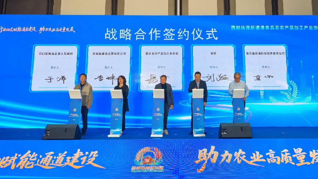 于洋(左一)参加西部陆海新通道食品及农产品加工产业协同发展系列活动并签订战略合作协议