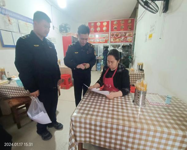 1月16日-1月22日,县综合执法局组织执法队员,对全县餐饮行业开展集中整治,对未整改到位或拒不整改的餐饮门店一律查处,并进行宣传劝导,提出整改措施。本次行动共出动执法人员30余人次,向商户发放并签订“餐饮油烟污染防治告知书承诺书”64份,纠正违章经营行为50余次。在排查整治期间,执法人员始终按照以说服教育为主,以行政处罚为辅的原则,采取边排查、边告知、边整改的模式,督促餐饮业主绿色、环保经营,确保餐饮油烟达标排放。