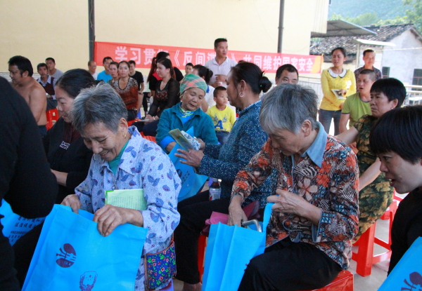 活动的最后,由县委普法办、县司法局和南溪农场的工作人员向群众发放宣传品及宣传册。据统计,此次活动共发放宣传手提袋200余份,围腰300余份,毛巾200余份,《中华人民共和国宪法》、《中华人民共和国法律援助条例》手册等600余份。
