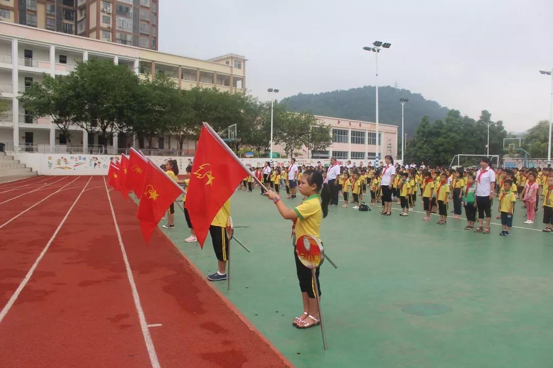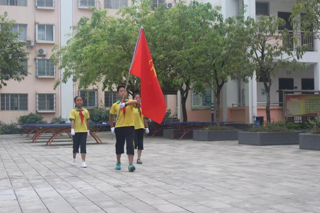 演讲后是国旗下宣誓,在大队长的带领下,全体学生举起他们粉嫩而有力的右拳,在飘扬的国旗下庄重宣誓:“我在国旗下宣誓……在家做个好孩子,在校做个好学生,在社会做个好少年”“时刻准备着,为共产主义事业而奋斗”,铮铮的誓言响彻在北山小学校园上空,回荡在每一个少先队员的内心深处。