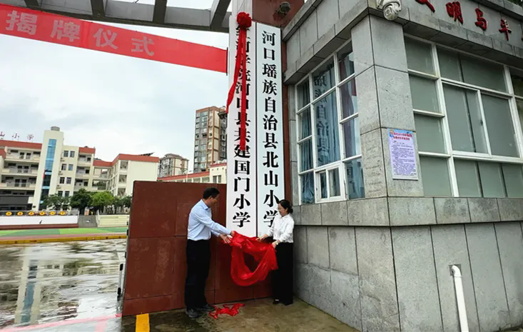 会议结束后,邓瑞与杨生超在河口县北山小学共同为“红河学院河口县共建国门小学”揭牌。据了解,“红河学院河口县共建国门小学”揭牌后,双方将在教育和人才培养、实验室建设、文化交流、对外交流、应用型科学研究等方面开展合作,深化校地融合创新,实现优势互补、资源共享、双向赋能。