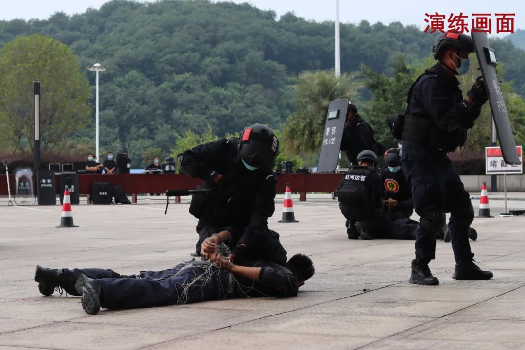 9月25日,河口县举办党的二十大安保维稳决战决胜暨夏季治安打击整治“百日行动”成果汇报演练,于洋、邓瑞、杨正光、林国才、杨光云等“区县”领导,红河边境管理支队支队长张本禹,县级相关部门负责同志及河口边境管理大队民辅警参加活动。